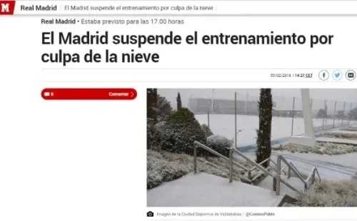 En las últimas horas, el Real Madrid decidió suspender la prácticaen la Ciudad Real Madrid, en Valdebebas, por la gran capa de nieve que cayó sobre el centro de entrenamiento.
