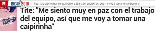 Ante la pregunta de si estaba contento con su equipo, respondió:“Sí, estoy en paz con lo que estamos haciendo. De hecho, si ustedes me lo permiten, me voy a tomar una caipirinhahoy”.