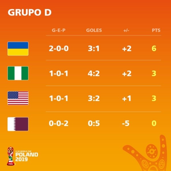 Estados Unidos, en tanto, cayó en su primer partido ante Ucrania por 2 a 1 y luego superó a Nigeria por 2 a 0. Con un triunfo, los norteamericanos obtendrán la clasificación a la fase final.