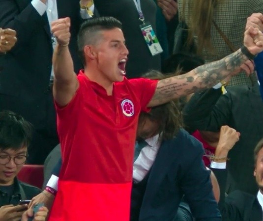 Era todo sufrimiento para James Rodríguez, desde el hecho de no poder jugar este importante partido hasta la derrota de su país contra Inglaterra.