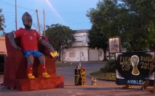 En la capital de la provincia de Buenos Aires confeccionaron un muñeco del volante de Bayern Munich, con la camiseta del seleccionado chileno y frente a un televisor, preparado para ver el Mundial de Rusia 2018.
