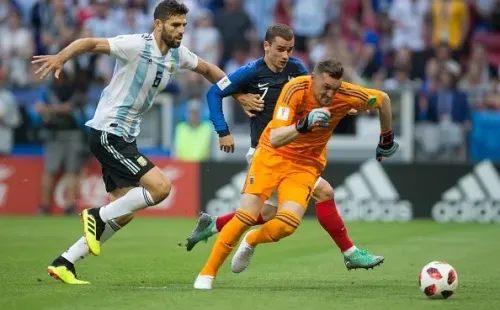 Ever Banega(ARG):aunque por culpa compartida, esta vez no fue socio de Messi, ni de nadie. En la gestación no tuvo peso y en la contención no hizo más que ver como los franceses le pasaban como tiro por izquierda y por derecha.