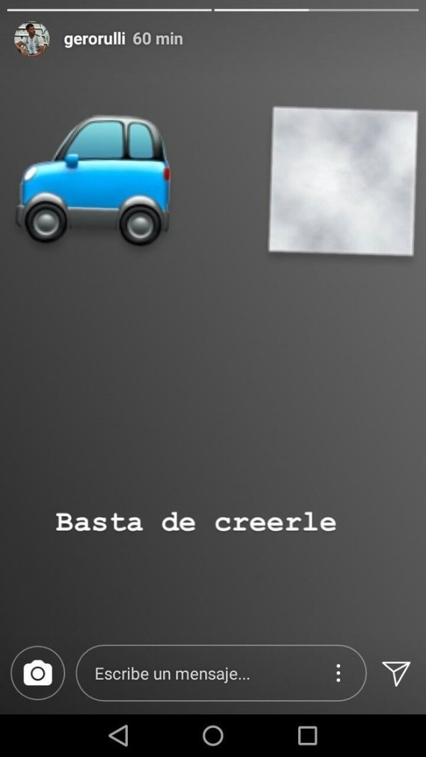 El exportero de Estudiantes de La Plata recurrió a su cuenta oficial de Instagram para compartir con todos sus seguidores una historia apuntada a Caruso Lombardi, con un dibujo de un auto (car en inglés) y una imagen con humo más la leyenda“basta de creerle”.