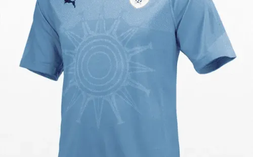 Lejos de ser oscuros, para que la garra charrúa no deje rastro, el uniforme titular es con el típico celeste, pero cuando con sol de su bandera en el pecho. Un detalle único.