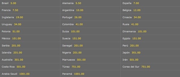 Grandes estudiosas de las oportunidades de unos y otros son las casas de apuestas que en ello se juegan gran parte de su patrimonio. Por eso, a través de ellas se puede determinar quiénes tienen las mayores y menores posibilidades de conquistar el Mundial de Rusia.