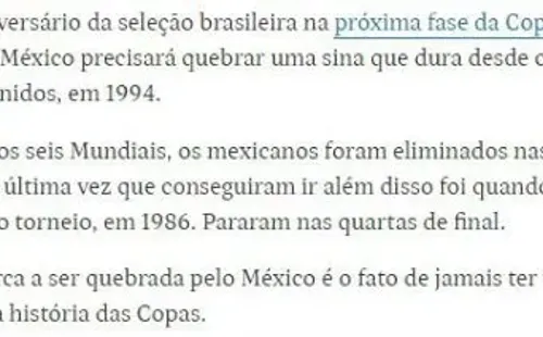 Así lo exhibe, por el ejemplo el diarioFolha de Sao Paulo, quien junto con decir que “Brasiltiene un historial positivo contraMéxico, pero ha visto crecer a su rival en los últimos años”, agrega una estadística que les preocupa, pues”el equipo de América del Norte se topó39 veces con Brasil, perdió en 22 ocasiones, empató siete y ganó 10 partidos, cuatro de ellos en los últimos 20 años”.