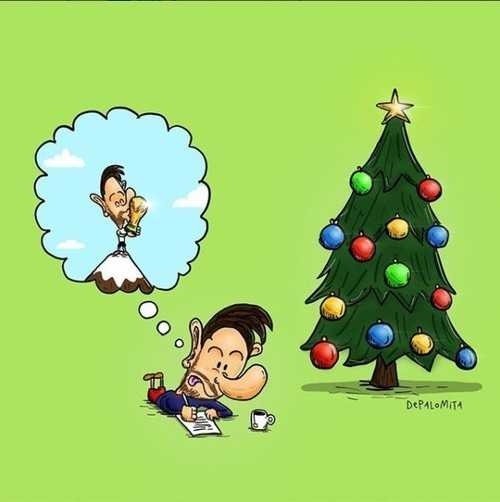En la imagen se puede ver al crack de Barcelona frente a un árbol de Navidad, diseñando su pedido para el 2018. Por supuesto, el dibujo deja en claro que el máximo anhelo de uno de los mejores futbolistas de todos los tiempos tiene que ver con el Mundial.