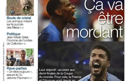 Los franceses quieren inclinar la cancha desde los medios. Por ese motivo, en sus portadas de mañana, aparecerá la cara de Luis Suárez y un título intimidante: “Será mordido”.