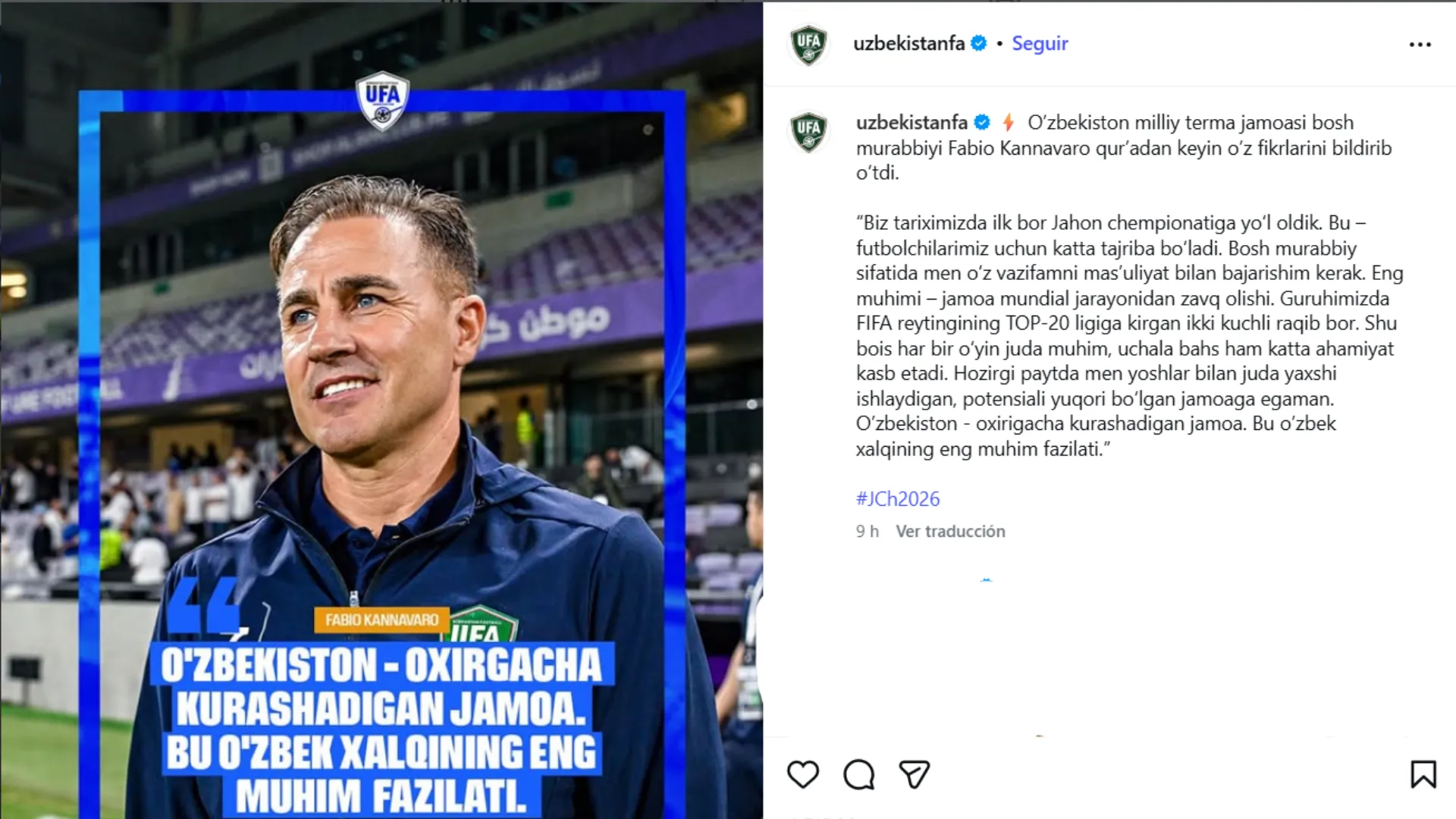 - El entrenador Fabio Cannavaro lidera a Uzbekistán en su primera clasificación histórica a una Copa Mundial y destacó que lucharán hasta el final.