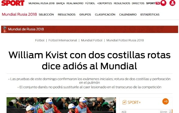 Kvist, que debió ser retirado en camilla y con muchísimo dolor para dejarle su lugar a Lasse Schone,se fracturó dos costillas. Como consecuencia, ya se despide y no podrá seguir disputando el Mundial.