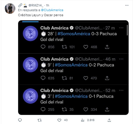 En el Estadio Azteca, América recibió una dura cachetada por parte de Pachuca debido a que lo goleó por 3-0. Por otro lado, luego del encuentro, las redes sociales estallaron con los memes que se burlan del conjunto Azulcrema.