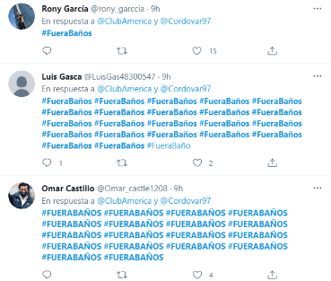 Es así que, después de que el América hiciera oficial la llegada de Fernando Madrigal como refuerzo, los aficionados del conjunto capitalino estallaron en redes sociales, logrando colocar como tendencia en Twitter el hashtag “#FueraBaños”, exigiendo la salida del directivo de las Águilas, como desde hace ya tiempo.