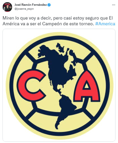 Además, admitió: “Miren lo que voy a decir, pero casi estoy seguro que el América va a ser el Campeón de este torneo”. Así es: Joserra Fernández está dando a las Águilas como próximos acreedoras del trofeo de la Liga MX. Esto, justo después de que aplaste a Pumas (0-3), Pachuca (0-3) y Cruz Azul (7-0).