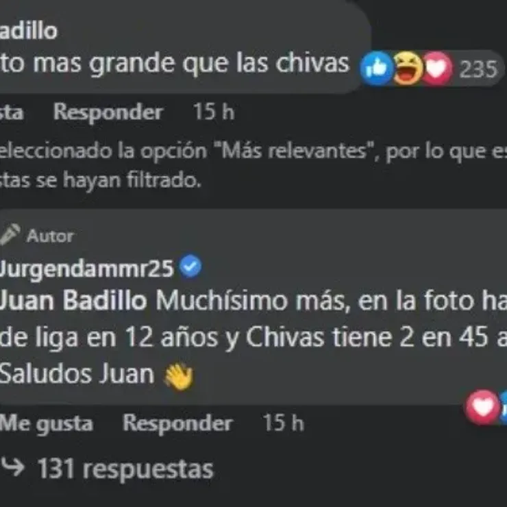 La respuesta del futbolista de 30 años no se hizo esperar y aprovechó la oportunidad para burlarse de la sequía de Chivas en los últimos años. “Muchísimo más, en la foto hay 5 títulos de liga en 12 años y Chivas tiene 2 en 45 años. Saludos“, escribió el mexicano.