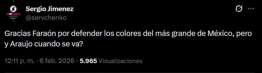 En el comunicado oficial que informó la salida de Lichnovsky de América, los seguidores del equipo utilizaron las redes sociales para expresar su descontento y pedir por Araujo. Según entienden los aficionados, el central mexicano de 34 años ya no presenta el nivel necesario para permanecer en un equipo que busca pelear por cosas importantes en cada competición que disputa.