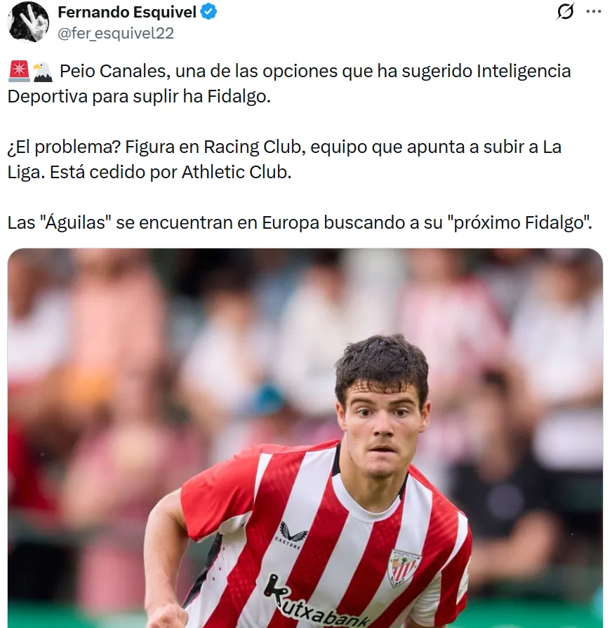 De acuerdo a lo que informó el periodista Fernando Esquivel, uno de los nombres apuntados es Peio Canales, futbolista que actualmente está cedido en Racing de Santander, equipo de la segunda división de España, aunque su pase pertenece al Athletic Club de Bilbao.