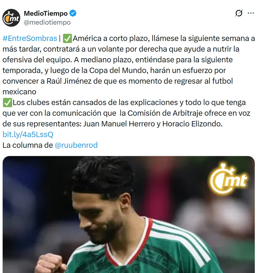 El regreso de Raúl Jiménez sigue siendo un tema de alto interés para la directiva, pero la estrategia del club indica que primero deben cerrar incorporaciones inmediatas que fortalezcan otras áreas del equipo. Así, América busca llegar al próximo ciclo con un plantel equilibrado y preparado para competir en todos los frentes.