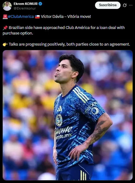 Según la misma fuente, lo único que se necesita aquí es el visto bueno de Dávila, si el futbolista se quiere ir le abrirían las puertas, pero hay que mencionar que hasta hace unas semanas se reveló que el futbolista no tenía intención de irse de la escuadra, por lo que ahora todo depende de lo que pueda resolver por el tema del salario que percibe en América.