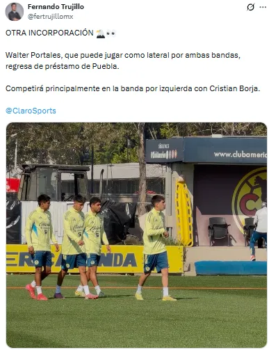 De acuerdo con la información de Fernando Trujillo de Claro Sports, el día de hoy en el equipo se encontraba el “nuevo refuerzo”, Walter Portales, que toma la posición de lateral izquierdo y quien podría sustituir a Orquín. El futbolista llega después de su cesión con Puebla y se puso a disposición de André Jardine, por lo que podría ser la pieza que necesitaban.