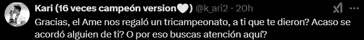 Naturalmente, los mensajes de los fanáticos del América no tardaron en llegar. “Qué odioso eres, David”, “el Ame nos regaló un tricampeonato , a ti que te dieron, acaso se acordó alguien de ti? O por eso buscas atención aquí?” y “con esta derrota le quitan el tricampeonato al América?”, fueron algunas de las réplicas que recibió David Faitelson.