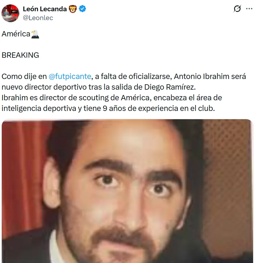 En medio de este escenario, el periodista León Lecanda reveló que Antonio Ibrahim, quien ya trabajaba dentro del club como director de scouting y del área de inteligencia deportiva, sería quien asuma el cargo de manera inmediata, aprovechando su conocimiento interno y su largo recorrido en Coapa.
