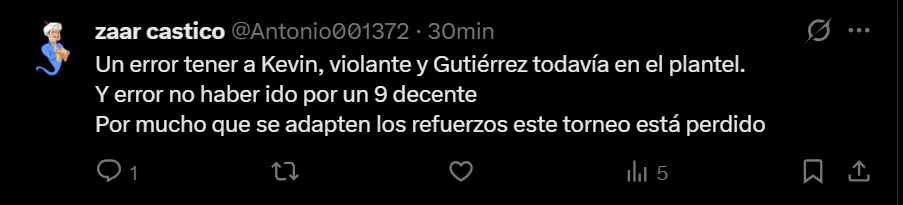 Este sábado, América dejó una floja imagen en el clásico ante Chivas por la Jornada 6 del Clausura 2026 y terminó perdiendo por 1-0 en condición de visitante. Tras el final del encuentro, los aficionados de las Águilas expresaron su malestar en redes sociales y, a pesar de que lanzaron críticas para varios frentes, hubo un protagonista que se llevó la mayor parte de los reclamos.