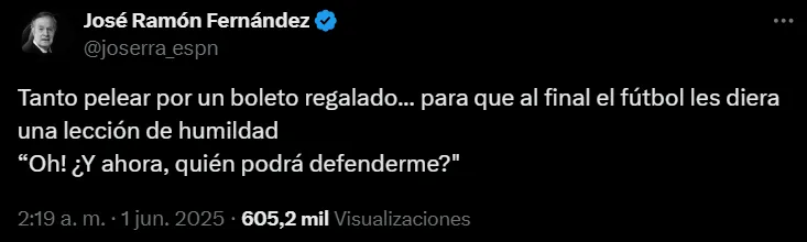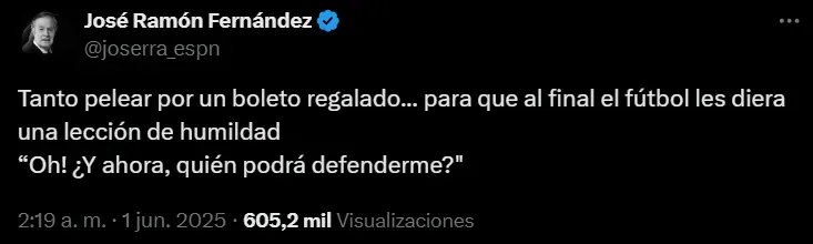 Las burlas en redes sociales no tardaron en llegar y el que aprovechó su momento fue José Ramón Fernández, periodista de ESPN que es aficionado de Pumas y que dejó varios mensajes en sus redes sociales destrozando a Las Águilas.