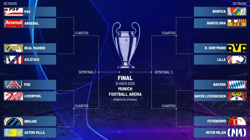 Este viernes, en Nyon, Suiza, la UEFA sorteó los cruces para los octavos de final y ya dejó armado el cuadro con el camino a cada equipo le espera para poder acceder a la gran final por la Orejona.