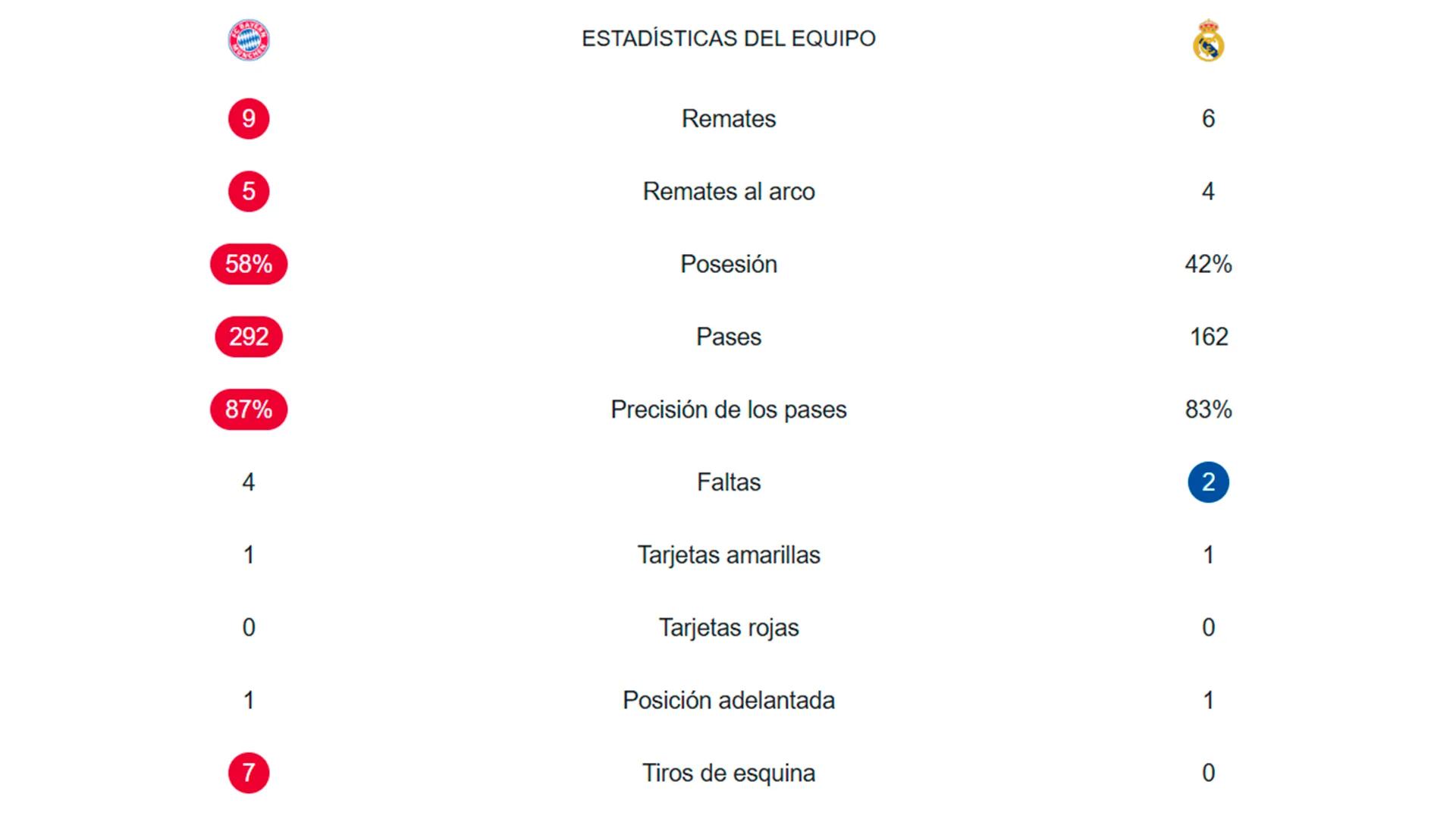 Las estadísticas del primer tiempo