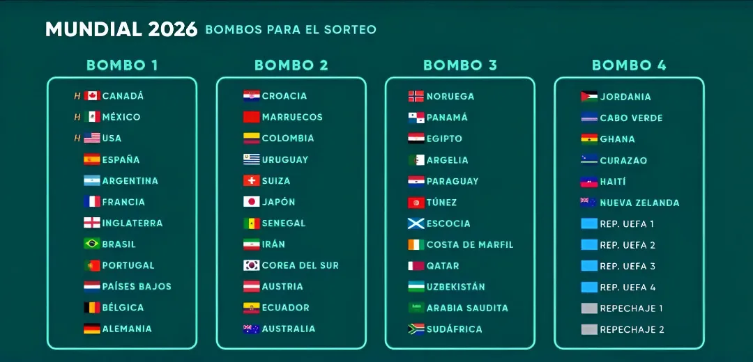 Los bolilleros del sorteo de la fase de grupos del Mundial 2026: