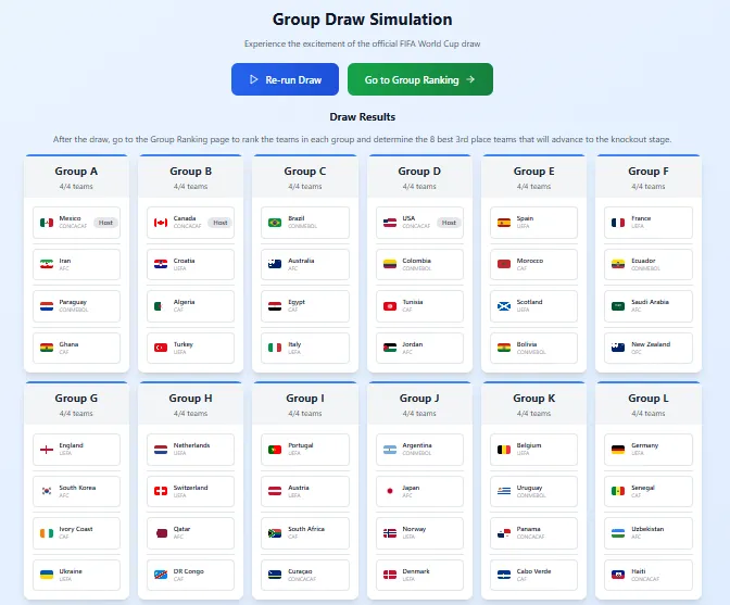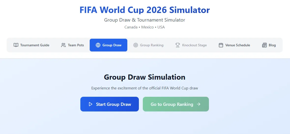 La mejor calculadora para el sorteo de la fase de grupos es el FIFA World Cup 2026 Simulator, una herramienta de predicciones que permite probar distintos escenarios posibles que pueden surgir del evento que se celebrará el próximo 5 de diciembre. El sitio presenta una interfaz muy clara que facilita el uso dinámico de la página al usuario, que rápidamente puede jugar y adivinar el grupo de su equipo.