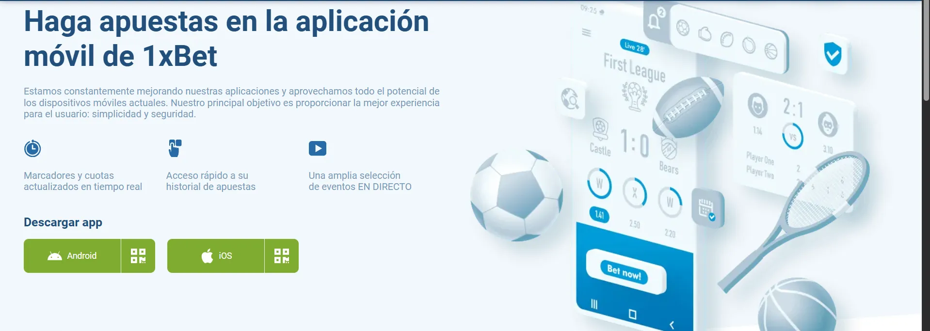 En caso de que así lo prefieras, también puedes descargar la app de 1xBet para Android y 1xVet iOS a través del código QR en el apartado del teléfono celular en el home del sitio web en desktop.
