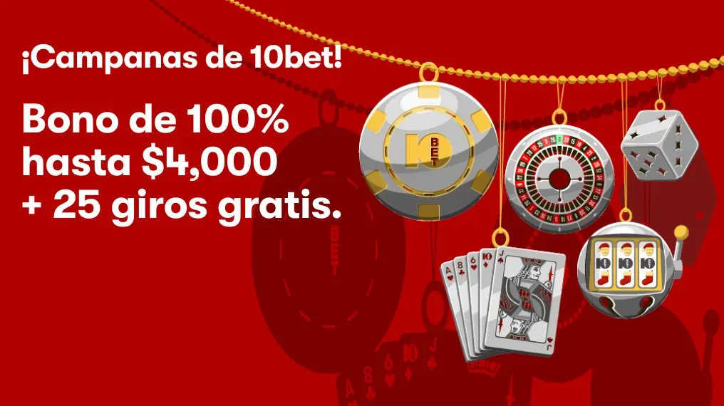 | Bono de bienvenida 10bet Casino | 100% de tu primer depósito hasta $4.000 MXN | Depósito mínimo: $100 MXN Rollover: x50 Vigencia: 30 días |