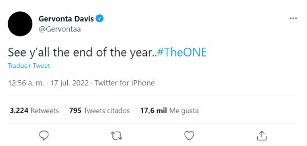 Esto tiene que ver con que si bien Gervonta Davis está dispuesto a enfrentar a Ryan García, no quiere que sea en la división de peso súper ligero sino en las 135 libras. “El único nombre que se sabe es Tank. ¿Quieres pelear con Tank? En el boxeo hacemos sacrificios. Entonces, tenemos la pelea de Tank en las 135. Si quieres esa pelea, en 135, podemos hacerlo realidad antes de fin de año”, dijo en diálogo con FightHype.