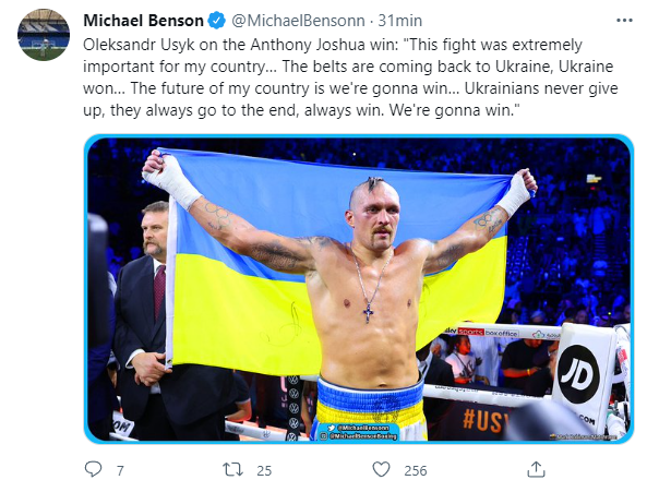 “Esta pelea fue extremadamente importante para mi país. Los cinturones están regresando a Ucrania. Ucrania ganó. El futuro de mi país es que vamos a ganar. Los ucranianos nunca se dan por vencidos, siempre van hasta el final, siempre ganan. Vamos a ganar“, dijo en rueda de prensa.