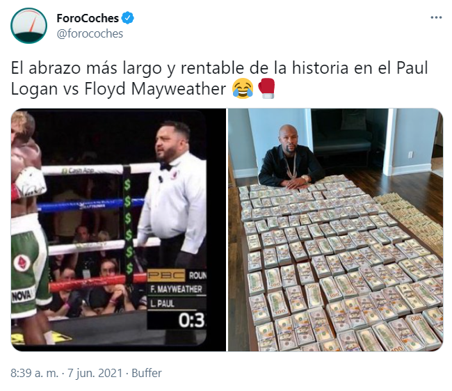 Las redes sociales no tardaron en reaccionar a estas circunstancias y especialmente a lo amistosos que habían sido entre sí Floyd Mayweather y Logan Paul cuando tantos, y lo lamentamos por ellos, habían pagado para ver una guerra, un derribo… Algo más de lo que vieron.