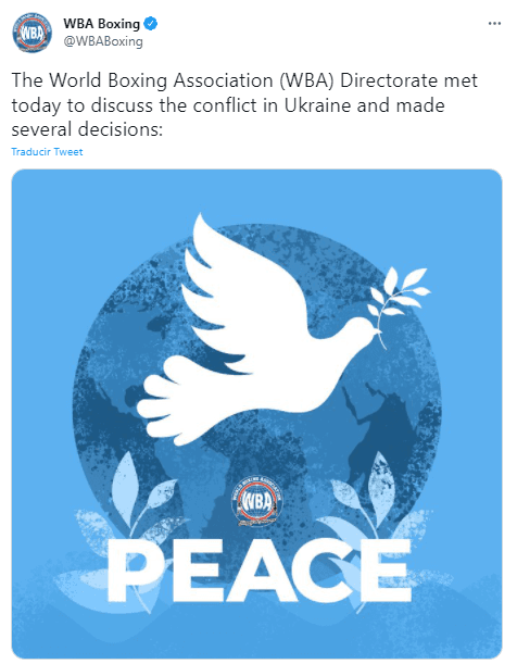 Ya a nivel más general, decidieron cambiar en sus rankings el nombre del país por la palabra paz, reafirmaron que no sancionarán peleas en territorio ruso, anuncieron que se guardarán el derecho de quitar de sus rankings a boxeadores que hablen en favor de la guerra y anunciaron el lanzamiento de una campaña en favor de la paz.