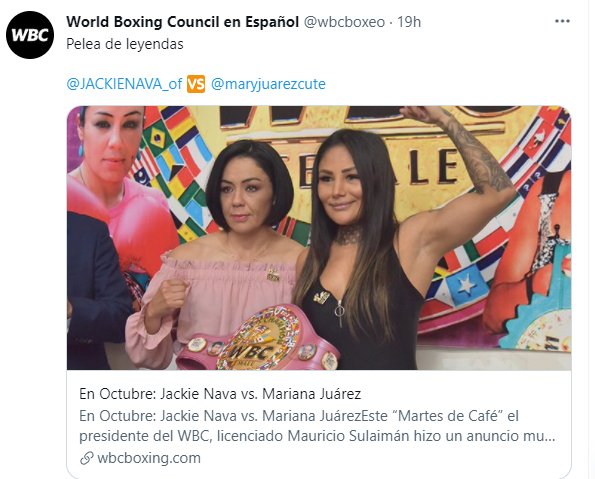 En una conferencia de prensa, el presidente del Consejo Mundial de Boxeo Mauricio Sulaimán anunció un combate que debió haber sucedido hace más de un año y medio y que terminó cancelándose a causa de la pandemia de coronavirus: se trata del cara a cara cien por ciento mexicano entre Jackie Navay Mariana La Barby Juárez.