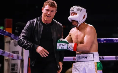 “Yo siempre he dicho que usted va a ser el mejor. Es un honor verte por primera vez en vivo. Gracias por hacer esto por los peleadores”, le respondió El Canelo, quien luego se quedó arriba del cuadrilátero para tomarse algunas fotos junto a la leyenda y recibir él también una auténtica ovación.