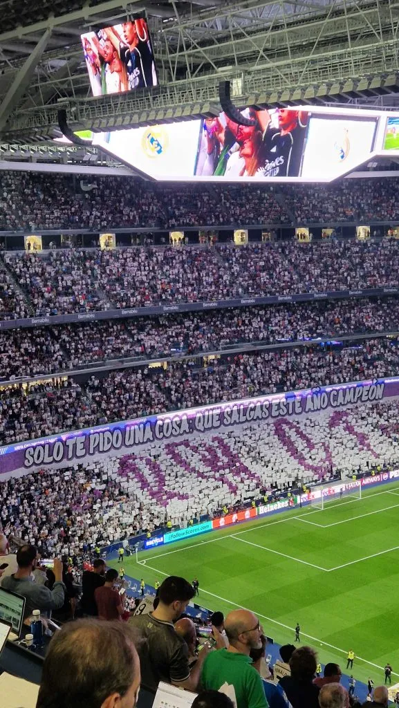 En el Estadio Santiago Bernabéu, el Madrid se está midiendo ante el Olympique de Marsella por la primera jornada de la fase de grupos y los aficionados ya colgaron una bandera con una clara exigencia a la plantilla de cara a lo que se viene.
