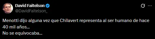 En esa grieta, David Faitelson se había inclinado por respaldar a los jugadores de Real Madrid. “Menotti dijo alguna vez que Chilavert representa al ser humano de hace 40 mil años… No se equivocaba…”, había disparado el reportero de Televisa en su cuenta de la red social ‘X’. Su publicación llegó hasta los 4 mil ‘me gusta’, siendo apoyada por muchos. Esa difusión también hizo que la recibiera el destinatario…
