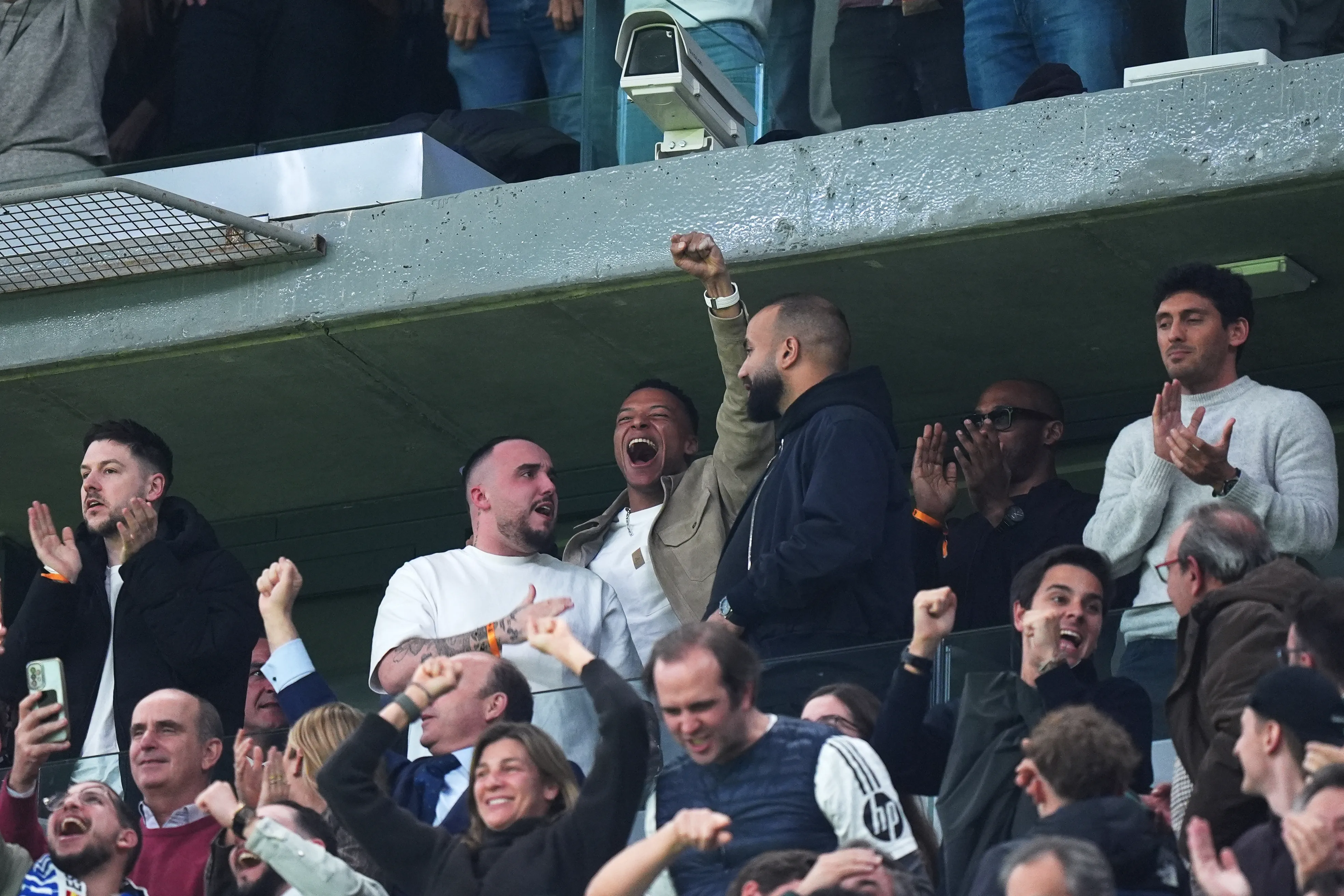 Así festejó Kylian Mbappé desde el palco El delantero francés no pudo jugar el partido por lesión, pero alienta a sus compañeros desde las gradas como un aficionado más.