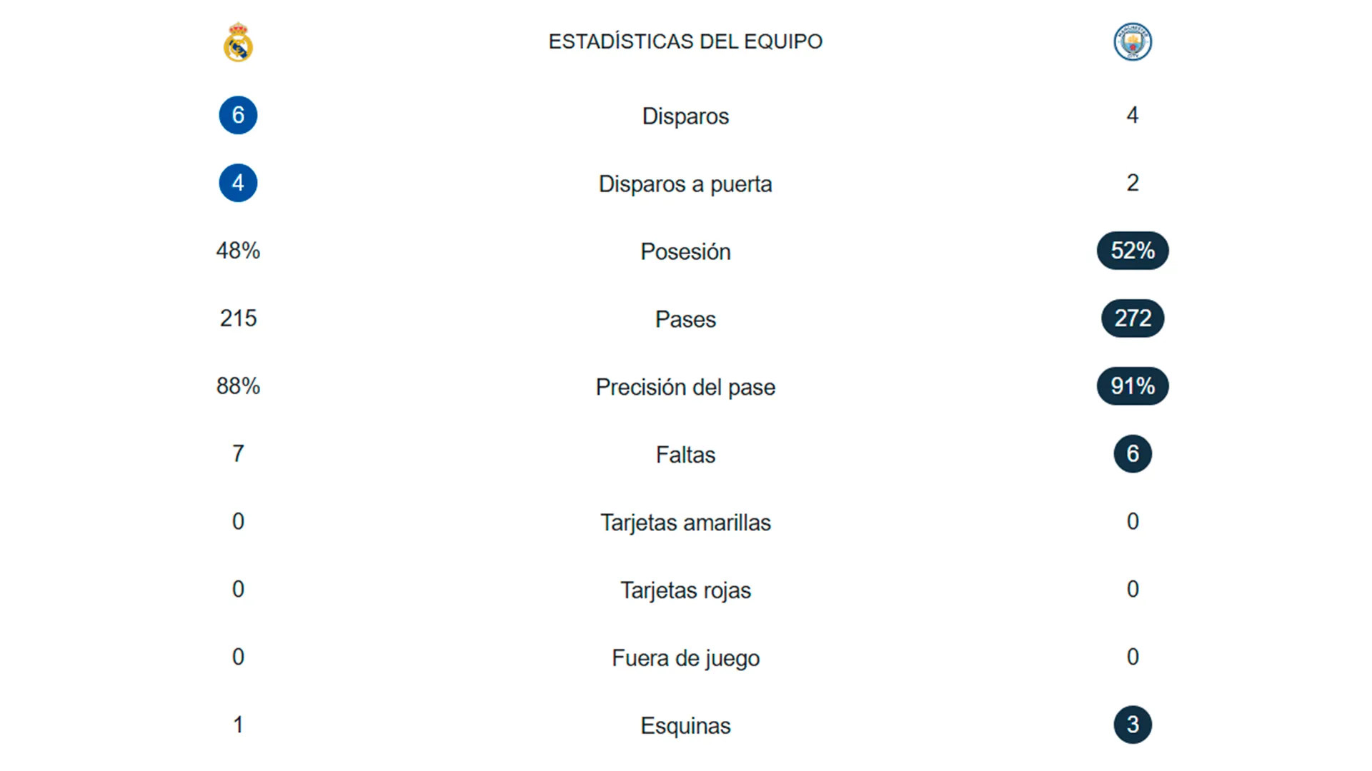 Manchester City le ganó a Real Madrid en esta misma edición Los Ciudadanos ya visitaron el Santiago Bernabéu por la Fase Liga el pasado 10 de diciembre. ¿El resultado? Victoria 2-1 a favor de Manchester City .