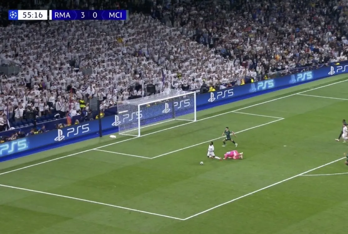 8' PT: Donnarumma salvó a Manchester City Brahim remató desde adentro del área tras un paso bombeado de Vinicius, pero el portero italiano respondió bien y el balón terminó en tiro de esquina.