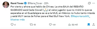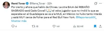 - El delantero Cade Cowell se perfila para salir de Chivas rumbo a la MLS al no tener ofertas en México, según René Tovar.