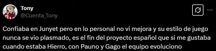 Así, se pudieron leer mensajes tales como “cuatro meses tirados a la basura, ya era hora de un nuevo proyecto”, “qué bueno que se largó”, “el comunicado oficial más esperado desde que arrancó el torneo” y “llega a su fin una historia que nunca debió haber pasado”, entre otros.