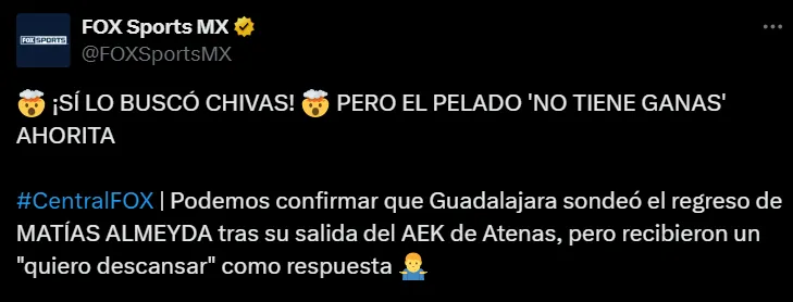En medio de ese escenario, apareció un nombre que ilusionó a todos: Matías Almeyda. El argentino es un referente para el Rebaño Sagrado, por lo que su posible regreso despertó entusiasmo en la afición. Almeyda viene de dejar su cargo en el AEK Atenas de Grecia y su situación parecía ideal para concretar el retorno.