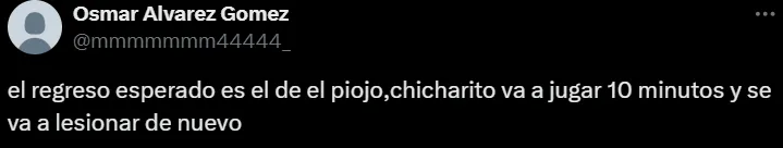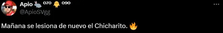“Mañana se lesiona de nuevo el Chicharito”, “apuesto a solo 20 minutos de Chicharito antes de lesionarse”, “cuánto que se vuelve a lesionar el Chicha” y “Chicharito va a jugar 10 minutos y se va a lesionar de nuevo”, fueron algunos de los mensajes de los fanáticos en X (ex Twitter).