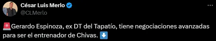 Según lo informado por el periodista César Luis Merlo, Gerardo Espinoza, ex entrenador del Tapatío, posee negociaciones avanzadas para sentarse en la banca jalisciense. Al respecto, se especula con que los detalles finales se cerrarían en las próximas horas para determinar una decisión final.