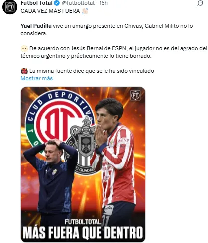 Ahora suena otro de los jugadores que no está siendo considerado por Gabriel Milito, si bien, tanto Chivas como Toluca clasificaron a la Liguilla y están pensando en el campeonato también se trabaja en saber qué elementos necesitan y cuáles están de más dentro de cada club, por lo que el club choricero ahora estaría recibiendo otra joya del Rebaño.
